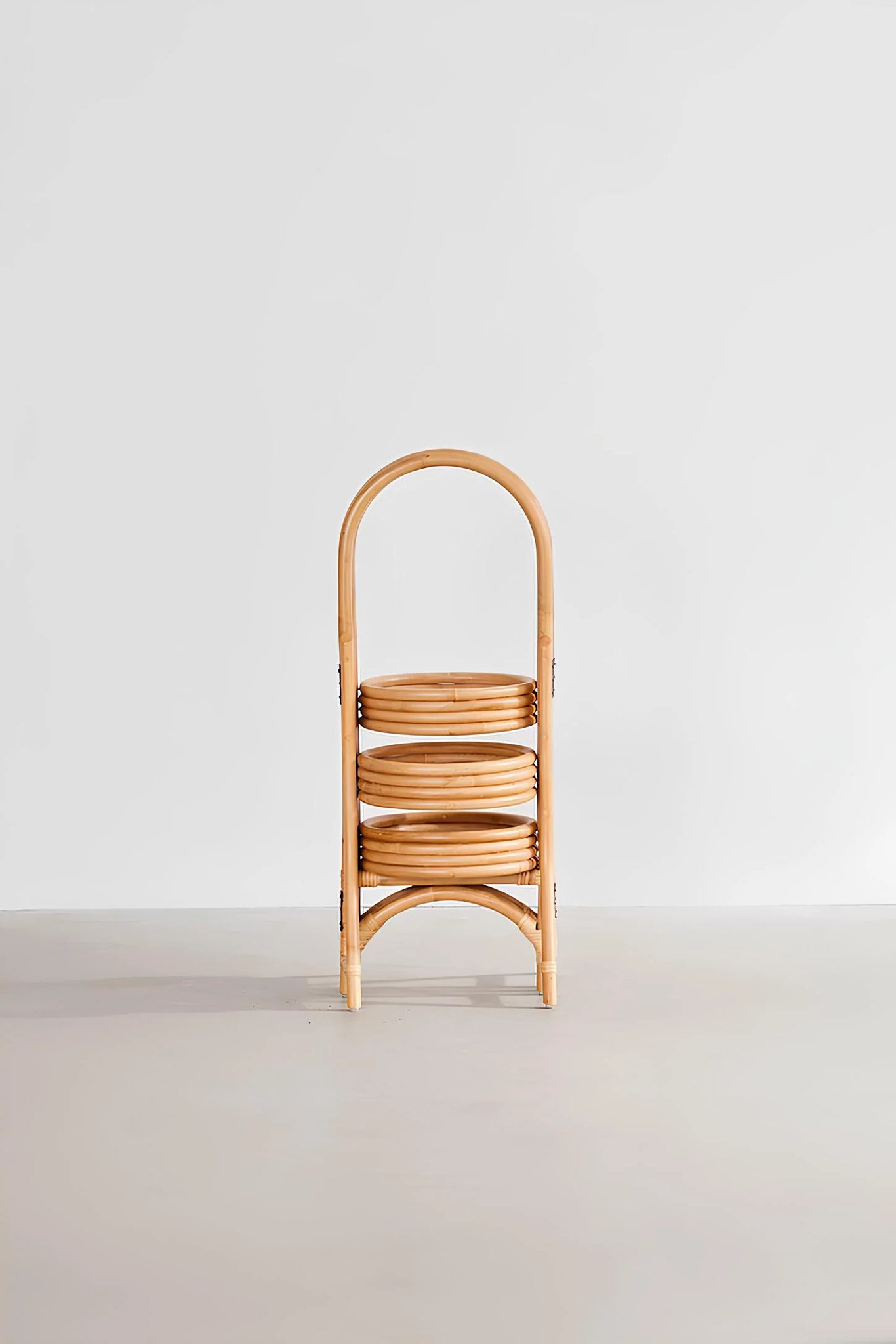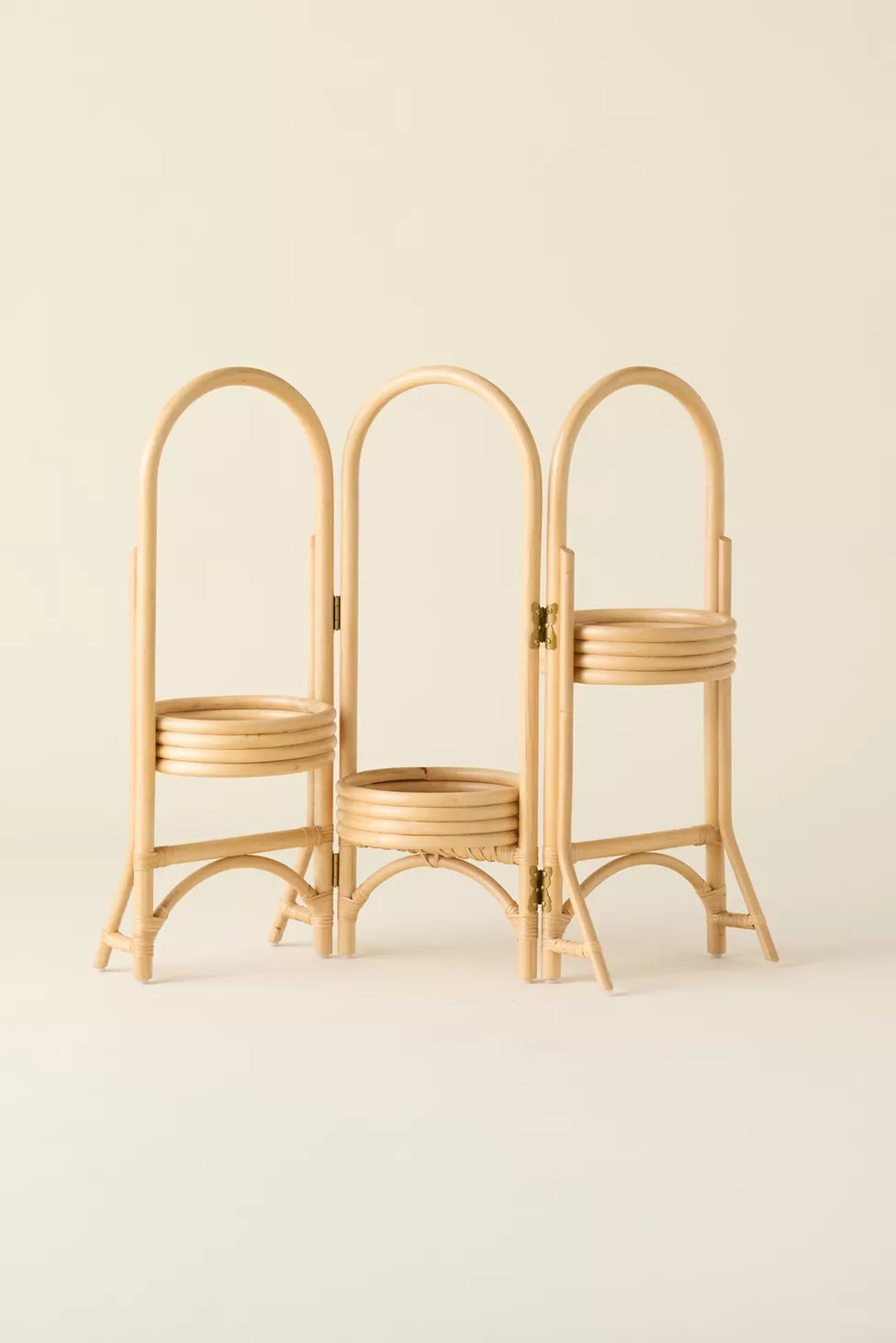 With a trio of panels, this looped rattan planter displays your favorite little ferns with fresh, boho style. Hinging structure at each panel folds in and a platform along each panel at different levels holds your planter of choice, complete with arched motifs at top and at the base. Available exclusively at Urban Outfitters.