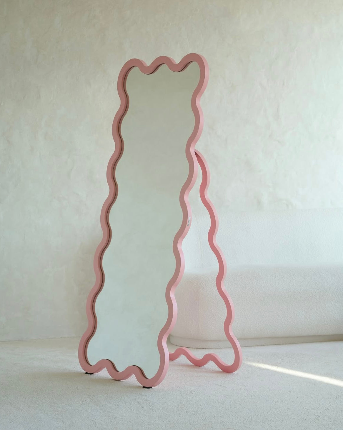 Brighten your space with the Halo Mirror from Casarella! Its wavy, one-of-a-kind frame adds a playful vibe. This full-length mirror isn’t just functional—it’s a bold, stylish centerpiece that turns any room into a work of art."